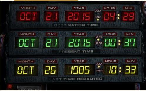 今日は、映画「バック・トゥ・ザ・フューチャー(Part2)」の中で主人公の高校生が愛車デロリアンでタイムトラベルした時間(2015年10月21日16時29分)が到来した日です。