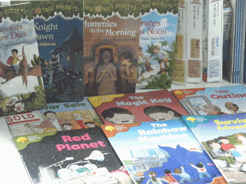 イギリスで小学生用国語教科書として採用されているオックスフォード・リーディング・ツリーや日本でも翻訳出版されているマジックツリーハウスシリーズを揃えています。「オックスフォード」は、レベルが細かく分かれているので、中1からでも読めます。